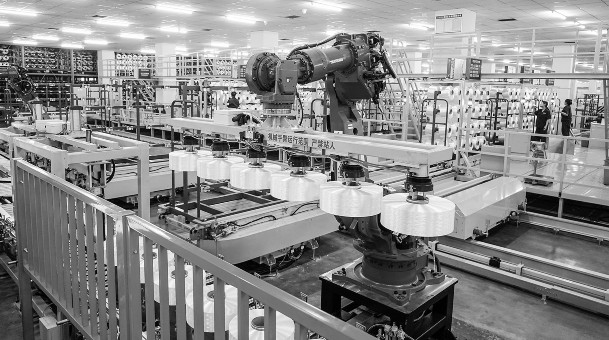 近年来,江苏省苏州市吴江区大力推进制造业智能化改造和数字化转型。在吴江区盛泽镇,化纤、纺织等企业建设大数据资源共享平台,实现全流程信息化、数据化管理,推进智能制造车间建设,打造智慧工厂。据介绍,2021年,吴江区盛泽镇计划推进制造业智能化改造和数字化转型项目230余个。图为在位于吴江区盛泽镇的恒力化纤工业丝智能车间,机器人在车间内自动作业。