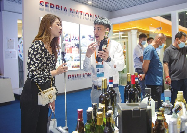 8日,第二届中国—中东欧国家博览会在浙江省宁波市开幕。本届博览会以“构建新格局、共享新机遇”为主题,设立了中东欧展、国际消费品展和进口商品常年展三大展区,并将开展论坛、经贸合作等活动。本届博览会将持续至6月11日。图为展商通过直播推介来自塞尔维亚的酒类商品。