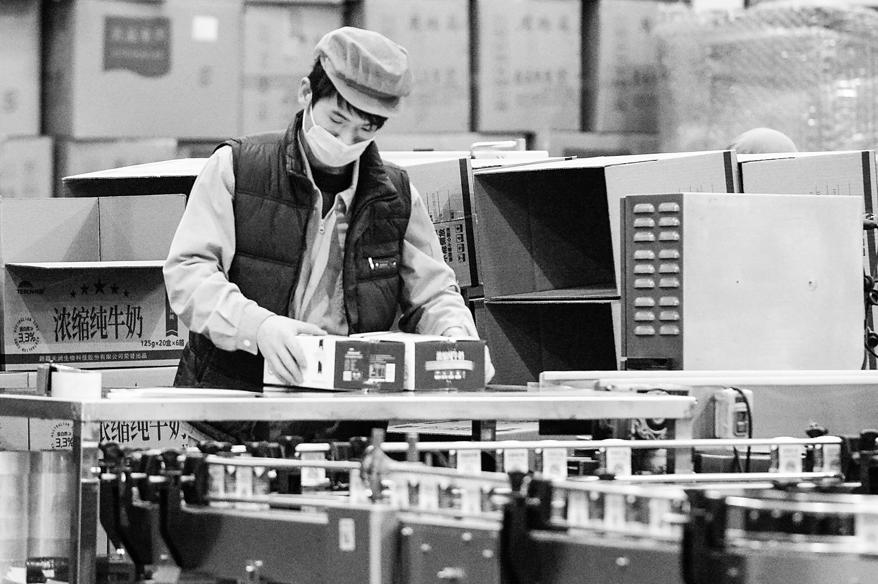 作为新中国建设“新的新疆”一项战略创举,新疆生产建设兵团于1954年组建。通过创造性转化历史遗产,党中央以兵团这一重大制度创新,确保“南泥湾”的屯垦奇迹,在新疆两大沙漠边缘、在千里边境线延续。党的十八大以来,深化改革在兵团全面启动,红色大地释放出前所未有的发展活力。图为新疆天润乳业股份有限公司,职工在包装流水线上作业。