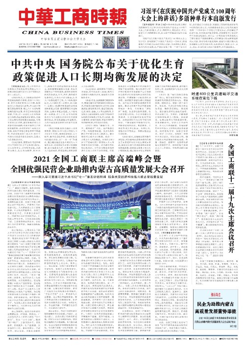 2021全国工商联主席高端峰会暨全国优强民营企业助推内蒙古高质量发展大会召开
