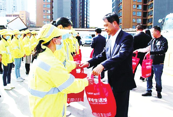 【本报曲靖讯】环卫工人是城市的美容师,正因为有了他们的辛劳劳动,才有了整洁亮丽的城市环境。为表达对环卫工们的敬意,日前,曲靖市广东商会开展“爱在行动——关爱城市美容师”活动,慰问长期工作在一线的云南省曲靖市麒麟区环卫工人。 活动现场,曲靖市广东商会向麒麟区环卫工人赠送了1000个爱心礼包,每个礼包里包含有1个保温饭盒、1张价值2000元的爱心帮扶卡。 “感谢你们不分严寒酷暑,奋战在清洁城市、改善环境的第一线,感谢你们长年发扬‘宁愿本人脏,换来万家净’的优良作风。正是因为你们任劳任怨、勤勤恳恳地工作,才净化了我们的城市。在此,我们真诚地向你们说一声声:谢谢了!”曲靖市广东商会会长揭育宁表示,环卫工人起早贪黑奔波在街头巷尾,用辛勤汗水换来了干净整洁的城市环境,今后将持续开展为环卫工人送温暖活动,让他们时刻感受到社会各界的温暖关怀。同时也希望带动更多的人参与到关爱环卫工人的队伍中来,爱护环境,减少他们的工作量,深入推动爱国卫生行动。 “赠人玫瑰,手留余香。”麒麟区环卫处负责人表示,曲靖广东商会为大家送上保温饭盒,给环卫工人带来了温暖,这是对环卫工人辛勤工作的肯定,更增强了环卫工人奉献的信心和力量。 收到这份来自寒冬时节的礼物,环卫工人们的喜悦溢于言表。环卫工人们纷纷表示,感谢爱心商会、企业的关心、关爱,今后将进一步干好本职工作,为城市环境整洁尽心、尽职、尽责。 据了解,曲靖市广东商会自2019年6月成立以来,始终不忘企业肩负的社会责任和使命,一直致力于扶贫济困、助学兴教、乡村振兴等社会公益事业,已先后向曲靖市抗击新冠疫情、脱贫攻坚捐助光(微)波炉2400余台、电磁炉1600台。