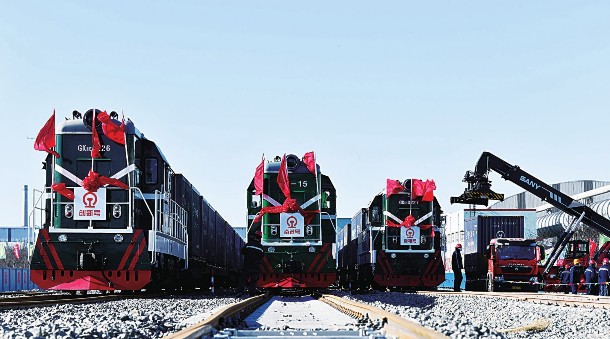 近日,天津市新天钢钢铁集团有限公司“公转铁”项目专用铁路正式开通运营。近年来,天津市积极推进钢铁企业原材料等大宗货物运输“公转铁”,减少因大宗货物公路运输造成的环境污染和道路拥堵。图为天津市新天钢钢铁集团有限公司工人在投入运营的铁路货运专线站台卸载货物。