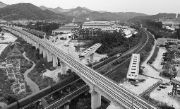 日前,中铁十一局承建的广东省清远磁浮旅游专线银盏特大桥的双幅转体梁实现精准对接。此次对接的两座转体梁分别长68米、重4000吨,在京广铁路上方20多米的高空同步旋转了71度,对接用时90分钟。图为清远磁浮专线银盏特大桥双幅转体梁转体前照片。