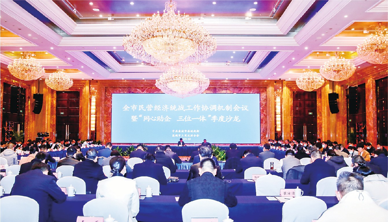 这里是同时拥有空港、海港两个一类开放口岸的地级市;这里是国家沿海发展和长三角一体化两大战略的交汇点。 这里风光秀丽,物产富饶;这里奋发向上,活力四射。 “面朝大海向未来、绿色转型作典范。把盐城建成立足新发展阶段、践行新发展理念、构建新发展格局、推动高质量发展的时代样板。”这是不久前召开的江苏省盐城市第八次党代会提出的目标。 为扎实开展2021年度盐城“民营企业服务月”活动,近日,盐城市委副书记、统战部长羊维达走访调研民营企业,倾听企业建议诉求,助力企业实现高质量发展。 羊维达强调:“对民营企业发展中反映的各种问题,要马上解决,特事特办、快事快办、难事巧办。要把支持民营经济发展列入领导班子和领导干部考核的重要内容,把促进民营经济的发展进度纳入绩效管理,把民营经济的发展成果作为干部选拔任用的重要标准。” 截至目前,盐城市个体工商户达55.5万户,民营企业达13万多家,生产总值占全市GDP的60%。民营经济是盐城经济增长的主力军、科技创新的主动力、就业创业的主渠道。 铁军精神 铿锵印记 在中国现代革命史上,盐城,具有重要的历史地位。 作为新四军重建军部所在地、锻铸“铁军精神”的中心地,盐城现有红色遗址遗存248处、以烈士命名的镇村128个,红色教育资源丰富。盐城市工商联充分挖掘红色教育资源,以“铁军精神”赋能“三支队伍”建设。 铁军精神的核心内涵是铁的信仰、铁的担当、铁的意志、铁的纪律。 为高质量开展好党史学习教育,迎接中国共产党成立100周年,盐城市总商会党委举办“传承铁军精神,争做合格党员”主题党日活动,组织近30名新党员走进盐城新四军纪念馆进行入党宣誓和参观学习。 一幅幅历史照片、一件件珍贵实物,再现了革命先烈浴血奋战、英勇不屈的情景。每到一处,大家驻足观看文字图解,了解新四军发展历程、军队领导生平事迹和革命战斗重要史实。革命先烈为了民族解放、人民幸福的伟大事业和崇高理想浴血奋战、视死如归的壮烈场景仿佛就在眼前。 2021年7月6日,盐城市工商联组织全体机关人员前往盐城图书馆,参观“中国共产党在盐城”图片展,重温革命历史。这次以“铿锵印记、初心永恒”为主题的图片展,全面展现了盐城革命老区,红色热土的深厚底蕴和光荣的革命传统。内容涵盖了100年来,盐城人民在中国共产党的领导下浴血奋战、艰苦创业、改革创新,谱写盐城从艰苦走向辉煌的历史篇章。 在盐城市工商联理论学习中心组学习习近平总书记“七一”重要讲话精神专题会议上,盐城市委统战部副部长、市工商联党组书记陈湘珍要求:“一要原原本本学;二要联系实践学;三要榜样示范学。要不断提高服务意识、增强服务本领、改进服务作风,坚定不移地加强民营经济人士思想政治教育引领,为民营企业和民营企业家做好精准服务;要切实把学习重要讲话精神转化为推动工商联事业高质量发展的实际行动,坚持做好‘两个健康’事业的使命担当。” 由盐城市委统战部、市工商联共同举办的民营经济人士理想信念教育培训班,邀请中共江苏省委党校教授汪汉忠开展以“踏平坎坷成大道——中国共产党百年奋斗历程和基本经验”为题的党史教育培训。同时,组织200多名民营经济代表人士、年轻一代民营企业家和商会组织负责人“三支队伍”的优秀代表赴南通博物苑和张謇纪念馆开展实境学习。 2021年6月,盐城市工商联承办了江苏省民营经济人士理想信念报告会,来自江苏全省的300多名民营企业家参加了会议。会上,盐城市工商联副主席、江苏仁禾中衡咨询集团董事长梁泽泉等企业家作了理想信念报告。 梁泽泉说,致富思源、富而思进。企业家要与新时代、与祖国同频共振,创造价值、服务社会,更好地满足人民对美好生活的向往,这是企业家最大的商道。 榜样的力量是无穷的。盐城市工商联召开全市非公有制经济人士优秀中国特色社会主义事业建设者表彰大会,29名优秀民营企业家受到表彰。在全国“两优一先”表彰大会上,梁泽泉被中共中央授予“全国优秀党务工作者”荣誉称号。 结合建党100周年,盐城市工商联在全市范围内设立新四军纪念馆等15家理想信念教育基地,集党史、党建、爱国主义教育为一体,发扬红色传统、传承红色基因。 盐城市工商联开展“解放思想大讨论”活动,营造良好的舆论氛围和活动声势,在网站、微信公众号开辟“解放思想大讨论”专栏,向民营企业征集解放思想的意见建议。 开展以“守法诚信经营、坚定发展信心”和“不忘创业初心、接力改革伟业”为主题的理想信念教育,积极引导广大非公有制经济人士增强“四个意识”、坚定“四个自信”、做到“两个维护”。成立盐城市青年企业家联合会,通过参观红色教育基地及举办培训班,引导年轻一代民营企业家做爱国敬业、守法经营、创新创业、回报社会的典范。 思想的深度,决定了行动的高度。盐城民营企业家乐于奉献,敢于担当。 在“万企联万村、共走振兴路”活动中,盐城市工商联精心组织,与常州市的商会组织和民营企业达成11个合作项目;引导动员盐城市26个民营企业与15个村(居)签约;全面动员27个异地盐城商会,引导在外地的盐城籍企业家积极参与行动;连续多次组织全市各级工商联、民营企业家赴陕西省铜川市开展帮扶,签署盐城·