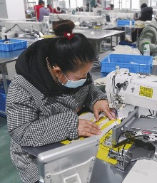 ②在广西灵川县定江镇,一家企业的员工在制鞋车间工作。陆波岸/摄