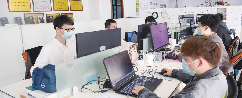 近年来,为了支持具有创新精神的大学毕业生和青年人才,位于重庆大渡口的“大众创业万众创新示范基地”专门启动社会服务领域双创带动就业专项行动,为拥有创业梦想的大学毕业生和青年人才“搭好台唱好戏”。目前,该基地累计培育372家就业见习基地,建成14个博士后工作站、1个留学人员创业园、1个专家服务基地。图为位于重庆大渡口的“大众创业万众创新示范基地”内,大学毕业生和青年人才在一家名为重庆芝诺的大数据公司内工作。