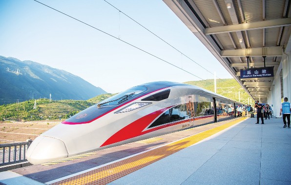 6月下旬,郑渝高铁将全线开通,重庆至郑州的乘车时间将从8小时缩短为4小时。郑渝高铁将进一步完善我国中部和西南地区的快速铁路网,并将结束重庆市巫山县、奉节县、云阳县不通高铁的历史,对推动三峡库区旅游发展、助力区域经济增长具有重要意义。图为郑渝高铁重庆至巫山段试乘列车在巫山站停靠。