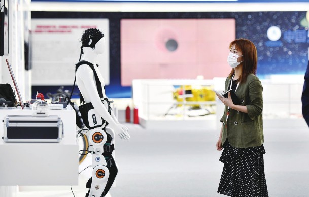 日前,第六届世界智能大会在天津开幕。据了解,本届大会以“智能新时代:数字赋能智赢未来”为主题,采用“会展赛+智能体验”的“云上”办会模式。图为参会嘉宾参观第六届世界智能大会天津制造业立市展。