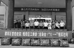 【本报商丘讯】为继续发扬拥军优属优良传统,推进民营企业家爱国主义教育,强化使命担当,日前,商丘市睢阳区工商联携手会员企业前往睢阳区人武部开展“八一”拥军慰问活动,该区区委常委、统战部部长李晓彬,区委常委、武装部部长马涛出席。睢阳区工商联会员单位中发休闲用品有限公司、商丘市工程建设业联合会、商丘市营销协会、商丘市酒店饮食业商会为区人武部的官兵送去了价值3万余元的军用帐篷、矿泉水、方便面等慰问品。 慰问中,睢阳区人武部负责人介绍了部队建设情况,李晓彬对部队官兵扎根睢阳,服务睢阳经济社会发展,保障睢阳人民安居乐业所作出的突出贡献表示衷心感谢和崇高敬意,同时号召会员企业发扬爱军拥军的优良传统,为推动军民共建工作贡献应有的力量。(胡翔龙王迪赵鹍鹏)