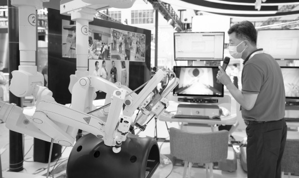 9日,2022世界5G大会组委会邀请媒体探馆采访。本次大会以“筑5G生态,促共创共利”为主题,于8月10日在哈尔滨开幕。大会汇聚世界5G发展的最新成果,为构建全方位、多领域、深层次的全球科技和产业合作体系描绘蓝图。图为在龙江数字经济展区,工作人员调试设备。