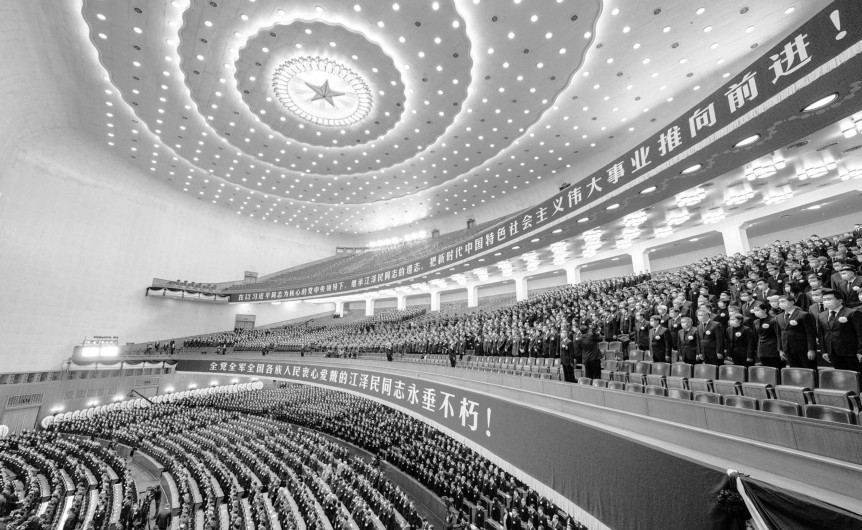 12月6日上午,中共中央、全国人大常委会、国务院、全国政协、中央军委在北京人民大会堂隆重举行江泽民同志追悼大会。