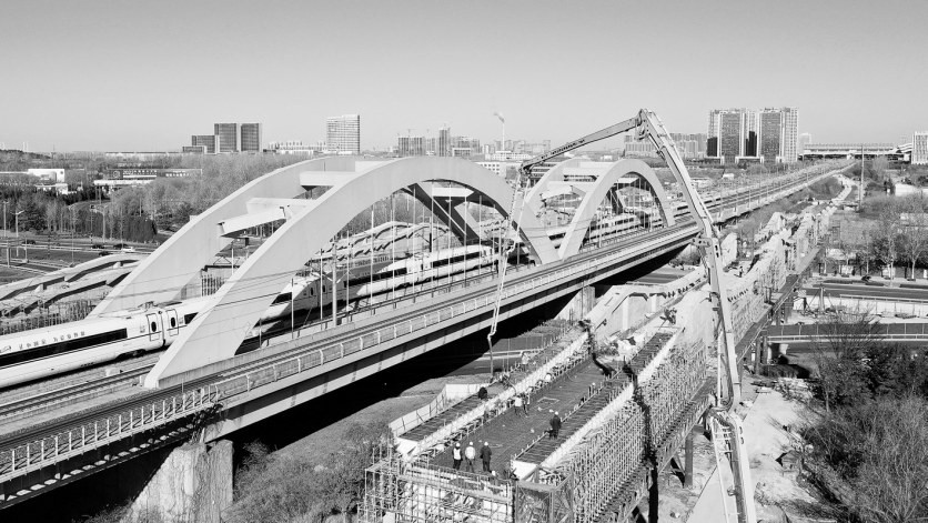 济郑高铁是国家“八纵八横”高铁网的重要组成部分。项目通车后,济南到郑州的通行时间将缩短至1.5小时,将成为中原城市群与山东半岛城市群间的快速客运通道。图为中铁十局的工作人员在对济郑高铁跨济南经十西路槽型梁进行合龙作业。