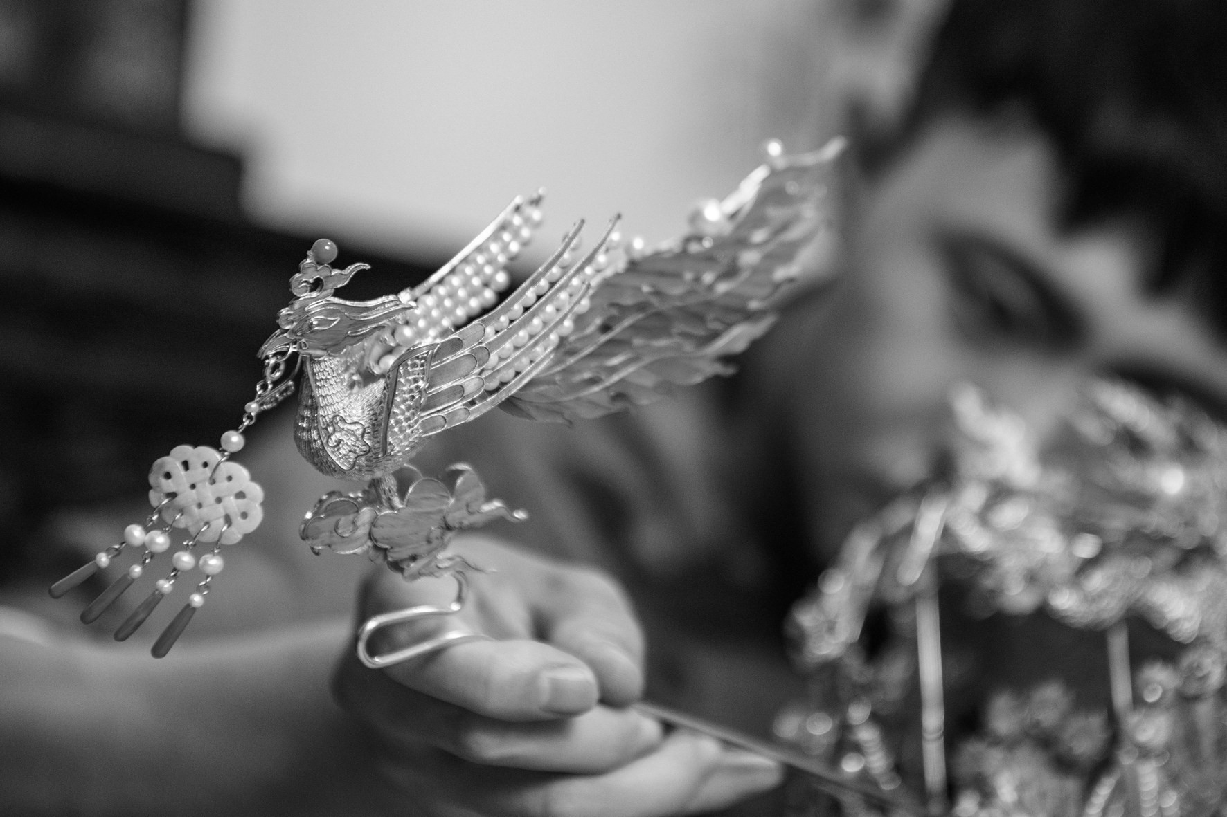 花丝镶嵌工艺是一门传承久远的中国传统手工技艺,2008年被列入国家级非物质文化遗产名录。7年前,大学毕业不久的辜国强偶然接触到花丝镶嵌技艺并迅速爱上了这门古老的手艺。拜师学成后他建立了工作室,探索利用这门传统工艺制作适合现代人佩戴的饰品,以创新的手段重塑老技艺,让传统工艺焕发新生机。2022年,在增强文化自信的道路上,在实现乡村振兴的奋斗中,在城市,在乡村,在学校,在工厂,在文化场馆,在田间地头……传统文化正不断散发出它新的活力。图为“90后”重庆小伙辜国强在组装花丝镶嵌作品“凤引九雏”。