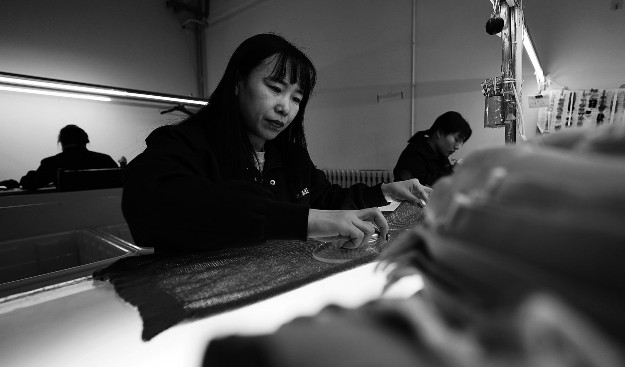 寒冬时节,河北省清河县的羊绒制品进入产销旺季,当地企业开足马力生产羊绒衫、羊绒大衣、羊绒围巾等产品,供应国内外市场。清河县有“羊绒之都”的美誉,羊绒制品生产历史悠久,是河北省重要的羊绒加工集散地和羊绒制品产销基地,已形成原绒采购、分梳、纺纱、针织、成衣等相关产业链。图为河北利意蒙羊绒制品有限公司工人在检查羊绒衫质量。