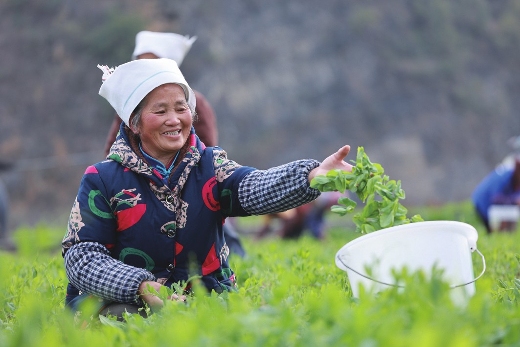 近年来,贵州省龙里县因地制宜,大力发展豌豆尖种植,带动当地群众增收,助力乡村振兴。目前,龙里县豌豆尖种植面积3万余亩,产品直销到上海、广州、香港等地。图为在龙里县湾滩河镇郊外,菜农在采摘豌豆尖。刘续/摄