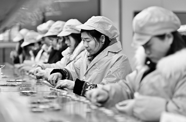 新春伊始,湖北省恩施土家族苗族自治州宣恩县分布在乡村的服装、电子加工等劳动密集型企业开足马力加紧生产。近年来,当地不断优化营商环境,吸引一批企业扎根乡村,为乡村振兴注入新动能。图为在宣恩县椒园镇一家工厂,工人在组装计算器。