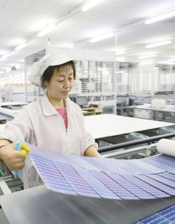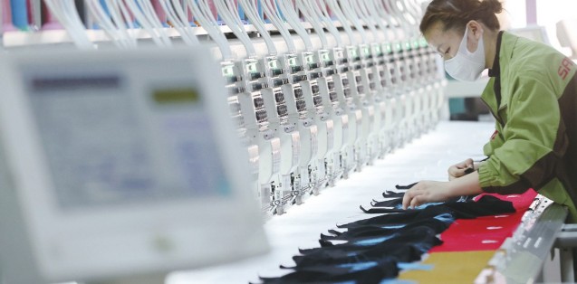 随着经济复苏,各地加快生产进度赶订单,全力冲刺一季度“开门红”。 ①图为在山东省东营市广饶县的东营大海科林光电有限公司智能化太阳能组件生产车间,工人在生产出口的光伏组件。 ②图为工人在浙江省湖州市德清县新安镇一家纺织企业生产车间赶制刺绣订单产品。 ③图为工人在重庆市黔江区海通丝绸公司生产车间忙碌。 ④图为工人在湖南省娄底市双峰高新区一外贸制鞋企业鞋面车间忙碌。 ⑤图为在江苏省南通市崇川区江苏大生集团智慧纺纱工厂生产车间,纺织工人在生产车间忙碌。