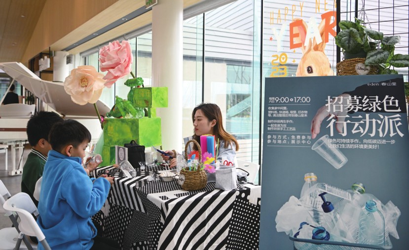 日前,位于天津市蓟州区的“eden春山里”生态教育国际生活示范区组织了以“绿意生活”为主题的植树、堆肥科普、自然讲堂等多场公益生态体验课,吸引了不少游客前来“打卡”。组织者希望借此不仅为废弃矿坑增添绿色,也在人们的心里“播种”绿色生态理念。 据介绍,该示范区坐落于天津市蓟州区东后子峪采石场旧址,经过多年修复治理和植树绿化,过去的危岩峭壁已被修整成了平缓的坡面。如今,该示范区内还融入了生态教育、健康生活、文旅度假等多种业态,带动了周边地区旅游业的发展。图为在天津市蓟州区“eden春山里”生态教育国际生活示范区,一名老师带领小朋友进行绿色可持续手工创作。新华社记者孙凡越/摄