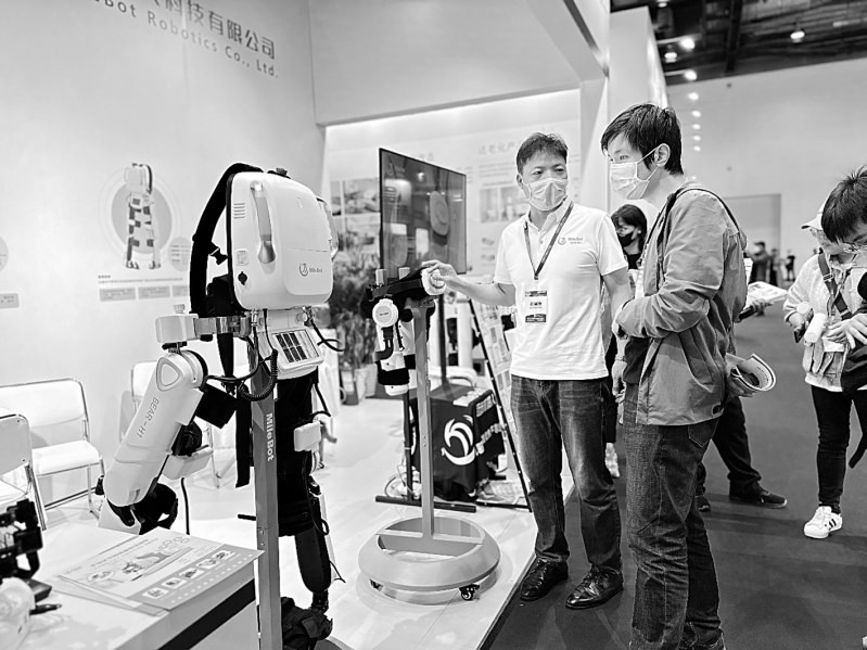 智能机器人、智慧养老平台、康复护理设备、“失能”体验馆……日前,第九届中国国际养老服务业博览会开幕式暨“第九届中国国际养老服务业发展论坛”在京举行。本次活动旨在践行积极老龄观、健康老龄化理念,聚焦新时代长者对美好生活的需求,进一步发挥社会组织凝智聚力的平台作用。 本届博览会由中国社会福利与养老服务协会、中国健康管理协会、中福长者养老服务有限公司共同主办。博览会共设5个展区,有280多家来自20多个国家和地区的政府部门、社会组织、品牌机构参展参会。同期将举办第九届中国养老服务业发展论坛及相关主题经验交流分享会。图为国家高新技术企业销售人员介绍自主研发的迈步康复机器人。