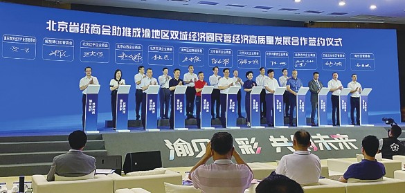 日前,北京省级商会助推成渝地区双城经济圈民营经济高质量发展峰会在重庆市渝中区举行。 此次峰会以“渝见京彩·共创未来”为主题,由重庆市工商联(总商会)、重庆市政府驻北京办事处、重庆市渝中区政府主办,渝中区委统战部、渝中区招商投资促进局、渝中区工商联(总商会)、北京重庆企业商会承办,旨在充分发挥北京重庆企业商会在北京的地域、渠道和人脉等优势,通过商会平台,整合各方资源、服务民营企业,招商引资服务家乡建设,促进成渝地区双城经济圈民营经济高质量发展。 重庆市人大常委会副主任赵世庆出席峰会并讲话,渝中区委书记、区长黄茂军,北京重庆企业商会会长陈友翠出席峰会并致辞。渝中区人大常委会主任何积光,重庆市工商联党组副书记、副主席彭光远,重庆市政府驻北京办事处副主任张新忠,渝中区委常委、统战部部长张焕伦出席峰会。渝中区委常委、常务副区长黄孝明在峰会上作渝中区招商推介。 赵世庆表示,举办此次峰会是落实重庆市推动民营经济高质量发展大会精神的一次具体行动。市委、市政府正以实际行动大力营造支持民营经济发展壮大的营商环境和良好氛围,为推动重庆民营经济跑出“加速度”,实现“新飞跃”,为现代化新重庆建设注入了强劲动力。希望各位商会会长、各位企业家深入了解当前重庆发展的良好态势,宣传重庆、推介重庆、投资重庆,抢抓机遇,务实合作,努力实现互利共赢。重庆将秉承合作共赢的理念,以最大的热情、最高的效率、最优的服务支持来渝投资企业,以“亲和最温暖”的政商环境,“办事最高效”的政务环境,“收益最大化”的市场环境,为民营经济提供发展的“沃土”,让广大企业家来渝投资放心、创业安心、发展顺心。 黄茂军表示,渝中区近年来推动民营经济发展进入“快车道”、跑出了“加速度”、呈现出“新气象”。希望以此次峰会为契机,欢迎各地企业家深度参与新时代、新征程、新重庆建设,积极助力成渝地区民营经济高质量发展。渝中区将始终秉承“你投资、我服务,你发财、我发展”的理念,全面打造重商、尊商、安商、护商的一流营商环境,努力为民营经济提供兴业兴盛的最优服务、开辟提质提速的最优赛道、探索共创共富的最优路径,让民营企业在渝中投资可放心、经营能安心、发展有信心。 峰会上,来自法律、金融、商贸等领域的知名企业家围绕民营企业如何把握成渝地区双城经济圈建设中的巨大机遇和发展红利,在服务国家战略中提升企业的综合实力和竞争力,共同交流经验、分享成果、启迪未来。渝中区相关部门负责人与28家北京省级商会签订友好协议。(周顺华)