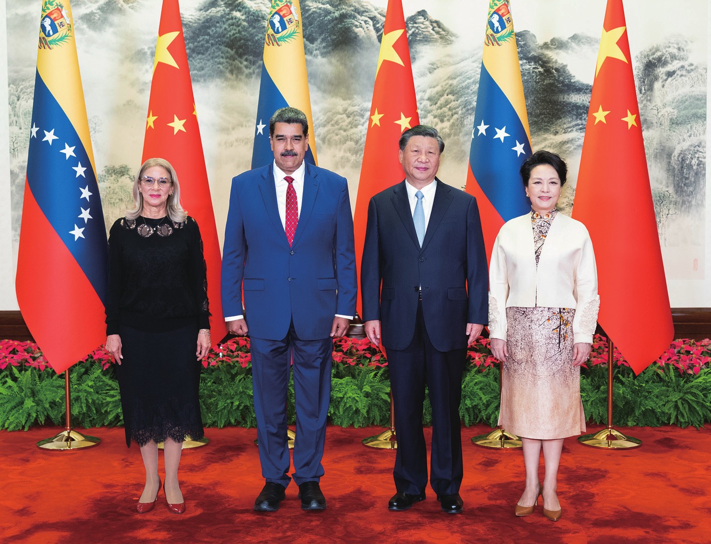 习近平介绍了中国改革开放特别是经济特区建设有关情况,指出改革开放是中国大踏步赶上时代的重要法宝,是决定当代中国命运的关键一招,中国珍惜这一过程中取得的宝贵经验,将继续把改革开放推向前进。没有任何势力能够阻挡中国发展进步的步伐。中方愿同委方坚定支持彼此探索符合本国国情的发展道路,加强治党治国理政经验交流,支持委方兴办经济特区,愿同委方分享有关经验,帮助委方推进国家建设。 习近平指出,明年是中委建交50周年,双方要予以隆重庆祝。中方愿同委方密切人文交流,支持在委开展汉语教学、办好孔子学院,加强媒体交流,讲好中委友好故事。双方要认真落实中委高级混合委员会第十七次会议取得的成果,加强下阶段各领域务实合作。中方愿扩大进口委内瑞拉优质特色产品。祝贺委内瑞拉成为美洲首个加入中国发起的国际月球科研站合作的国家。双方要在联合国、"77国集团和中国"等多边机制中密切配合,和其他发展中国家加强团结合作,共同维护联合国宪章宗旨和原则,维护广大发展中国家共同利益。中方高度重视中拉关系发展。明年是中拉论坛成立10周年。中方愿同委内瑞拉等地区国家一道,促进中拉整体合作,共建中拉命运共同体。 马杜罗表示,在习近平主席领导下,中国已经成为致力于全人类和平、发展与福祉的伟大国家,也是推动多极化新世界的重要引擎。我此次访华期间所见所闻无不充分展现着中国的进步和力量,我要向中国共产党取得的伟大成就表示衷心祝贺。委中两国友谊深厚,合作成果丰硕,两国关系堪称全球南方国家关系的典范。委内瑞拉人民衷心感谢中国政府和人民在委遭受非法单边制裁和新冠疫情多重困难时提供的宝贵支持和帮助。正是得益于中国兄弟的帮助,委内瑞拉人民经受住了考验,在国家经济建设事业中取得了不凡的成就。当前委国家发展和委中关系都处于重要时期,我对中国进行国事访问并同习近平主席一道宣布将委中关系提升为全天候战略伙伴关系具有历史意义,必将开启委中关系新时代。委方愿学习借鉴中方建设经济特区的经验,深化两国农业、投资、教育、旅游等领域务实合作。委方积极支持共建"一带一路",支持习近平主席提出的全球发展倡议、全球安全倡议、全球文明倡议,愿同中方密切在联合国、金砖机制等多边框架内的沟通协作,维护多边主义和发展中国家正当利益,推动构建人类命运共同体。委方愿为促进拉共体同中国关系进一步发展发挥积极作用。 会谈后,两国元首共同见证签署共建"一带一路"、经贸、教育、旅游、科技、卫生、航天、民航等领域多项双边合作文件。 双方发表《中华人民共和国和委内瑞拉玻利瓦尔共和国关于建立全天候战略伙伴关系的联合声明》。 会谈前,习近平在人民大会堂东门外广场为马杜罗举行欢迎仪式。 马杜罗抵达时,礼兵列队致敬。两国元首登上检阅台,军乐团奏中委两国国歌,天安门广场鸣放21响礼炮。马杜罗在习近平陪同下检阅中国人民解放军仪仗队,并观看分列式。 习近平夫人彭丽媛和马杜罗夫人弗洛雷斯陪同参加欢迎仪式。当晚,习近平和彭丽媛在人民大会堂金色大厅为马杜罗和弗洛雷斯举行欢迎宴会。 王毅参加上述活动。(刘华) (图)九月十三日下午,国家主席习近平在北京人民大会堂同来华进行国事访问的委内瑞拉总统马杜罗举行会谈。这是会谈前,习近平和夫人彭丽媛同马杜罗和夫人弗洛雷斯合影。新华社记者黄敬文/摄