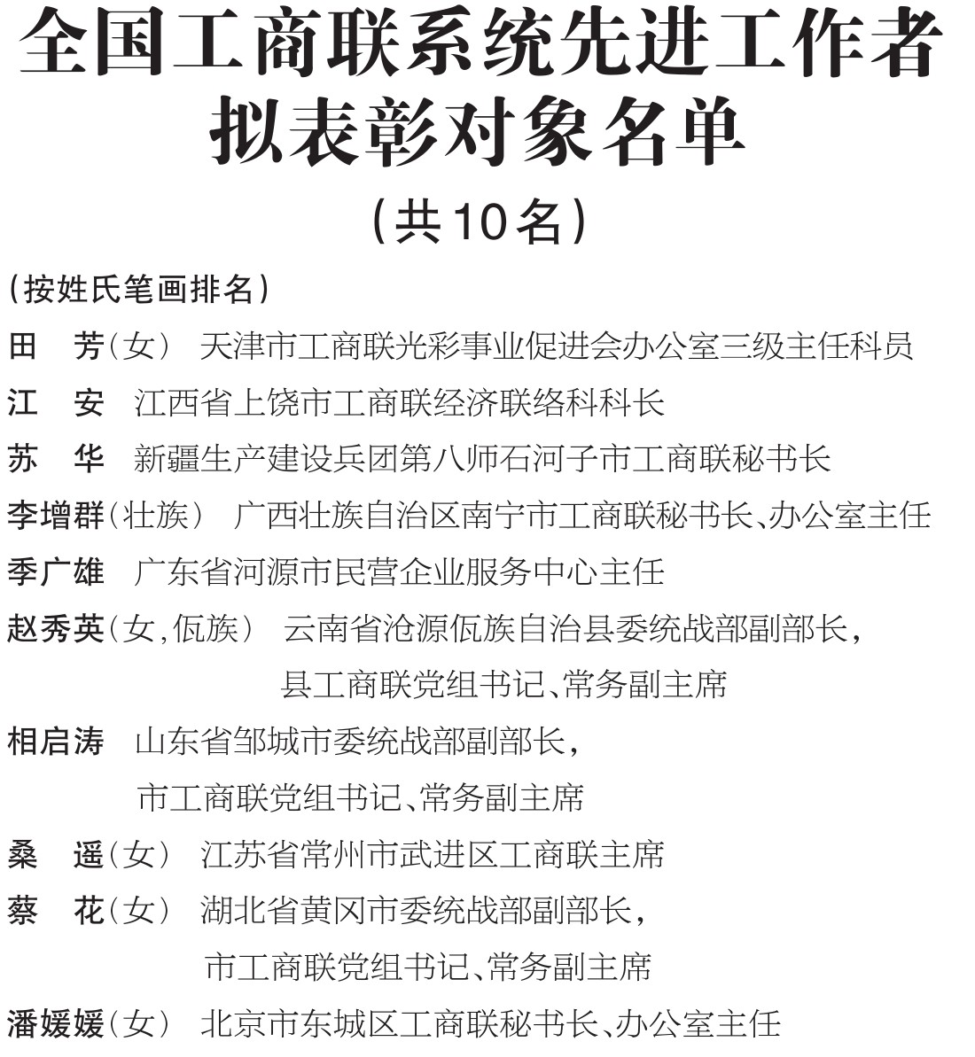 全国工商联系统先进集体和先进工作者拟表彰对象名单公示 |