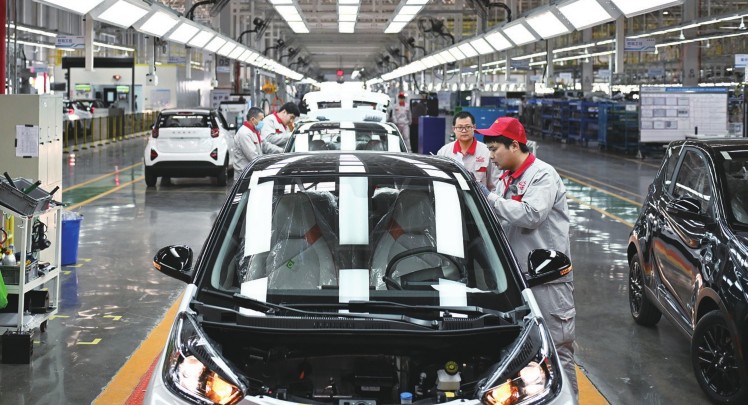 三月十九日,奇瑞新能源汽车股份有限公司石家庄分公司的工人在总装车间生产线上工作。近年来,河北省石家庄市栾城区围绕装备制造业转型升级发展需要,以智能制造为主要方向,深入实施创新驱动发展战略,推动一批装备制造企业加快智能化改造和数字化转型升级步伐。