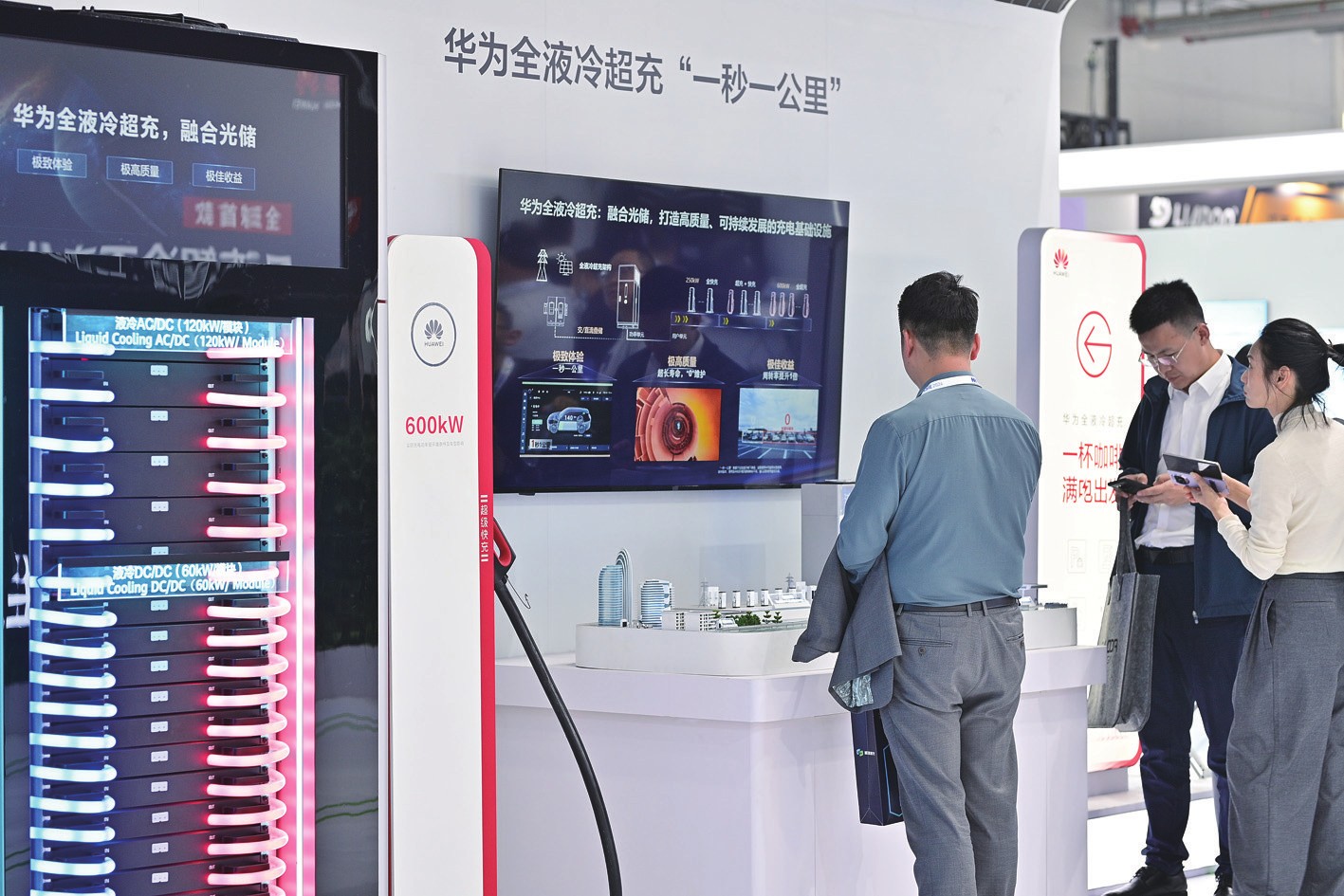 4月11日,参观者在第十二届储能国际峰会暨展览会上了解华为全液冷超充系统。第十二届储能国际峰会暨展览会4月10日至13日在北京首钢会展中心举行。本届峰会以“发展储能新质生产力开创能源转型新格局”为主题,设立了12大主题展馆,展览面积15万平方米。