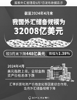 截至2024年4月末我国外汇储备规模为32008亿美元