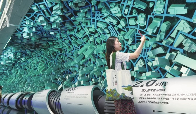 游客在南京市雨花台区梅钢工业文化旅游区钢铁体验馆内参观游览。近年来,江苏省南京市发挥传统工业和现代旅游业优势,不断加大整合开发工业旅游资源力度,持续强化培育工业旅游示范企业,“工业+旅游”日渐走红。在南京市雨花台区梅钢工业文化旅游区,“钢铁博物馆群游览区”“钢铁文化长廊”“钢铁工艺流程游览区”先后建成,传播钢铁文化和工业精神,吸引游客前来参观游玩。