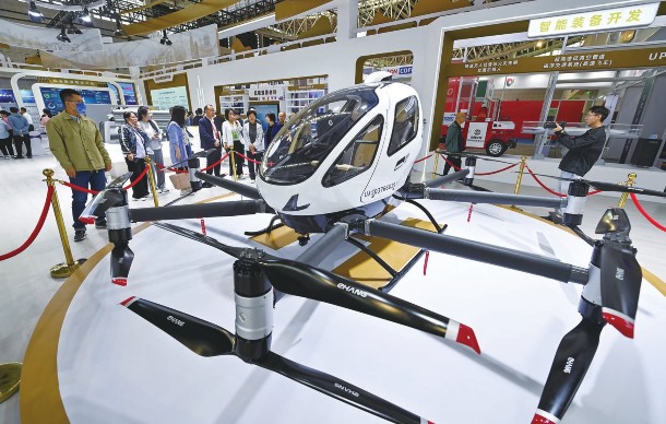 这是9月11日在2024中国(太原)国际能源产业博览会上拍摄的一架载人无人机。2024中国(太原)国际能源产业博览会正在山西太原举行。本次博览会围绕风电光伏、新型储能、新能源汽车等领域设置了专题展区,集中展示能源领域新技术、新产品等。博览会将持续至9月12日。
