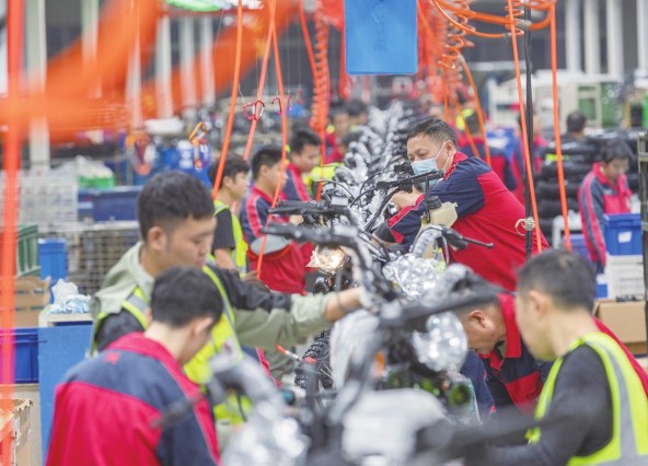 日前,在位于重庆高新区的重庆鑫源摩托车股份有限公司工厂内,工作人员在生产线上组装出口至拉美国家的摩托车。 在位于重庆高新区的重庆鑫源摩托车股份有限公司工厂内,一台台摩托车经过组装、检测后被推下流水生产线,不久后这批摩托车将发往巴西等拉美国家。 重庆鑫源摩托车股份有限公司是一家主要从事摩托车出口的企业,目标客群主要集中在拉美地区,其产品针对巴西等拉美国家的地理环境、交通路况以及当地人的生活习惯,不断升级换代,以符合当地消费习惯。 据介绍,今年以来,该企业产品在巴西销售量和销售额同比去年增长超140%,在墨西哥、厄瓜多尔等其他拉美国家销量也增长明显,同比增长超120%。新华社记者黄伟/摄