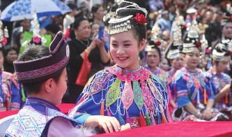 近日,来自湘黔桂三省区交界处的群众聚集在广西三江侗族自治县梅林乡,载歌载舞,欢庆“二月二”传统佳节。图为侗族群众在广西三江侗族自治县梅林乡文化广场表演侗族大歌。