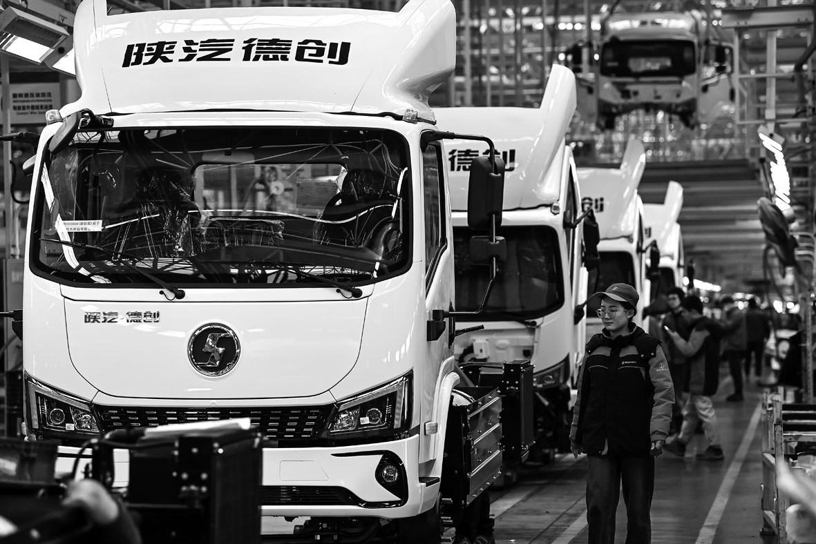 近日,工作人员在位于宝鸡市岐山县的陕汽集团商用车有限公司总装车间生产线上作业。 近年来,西部工业重镇陕西省宝鸡市以高端化、智能化、绿色化、集群化为主攻方向,积极发展机床工具、轨道交通装备、石油装备等重点装备制造产业,行业龙头和专精特新企业聚集效应凸显,新的增长动能加快形成。2024年,宝鸡装备制造业产值约380亿元,产业发展持续向好,成为引领宝鸡工业转型升级的重要引擎。新华社记者邹竞一/摄