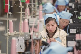 近年来,云南省文山壮族苗族自治州通过机制创新、政策扶持和服务优化等一系列举措,不断优化营商环境,有效促进中小企业特色产业集群发展,助力民营企业提质增效,同时不断吸引众多优质企业选择在文山投资落户、生根发芽。据了解,2024年全州民营企业数量已达5万余户,相比2023年增长了近万户。图为在文山州马关县的一家服装制造企业,女工在产线上工作。新华社发彭奕凯/摄