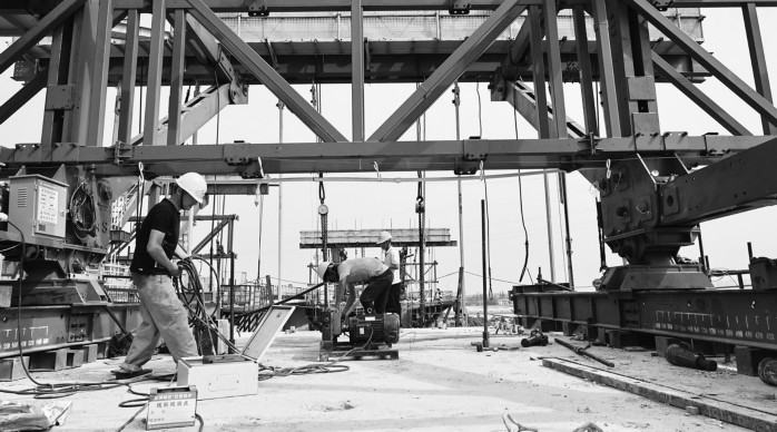 8月12日,工人在沪宁合高铁上海特大桥跨罗蕴河连续梁浇筑作业面施工。当日,由中铁四局承建的沪宁合高铁上海特大桥跨罗蕴河连续梁施工启动,沪宁合高铁建设稳步推进。沪宁合高铁是沪渝蓉高铁的东段线路,起自上海市新建上海宝山站,接入既有合肥南站,线路全长约554公里,设计时速350公里,承担沿江通道主要路网客流、沿海及京沪通道部分直通上海客流的运输任务。该项目建成后,将形成一条连接上海、南京和合肥都市圈的快速新通道。新华社记者方喆/摄