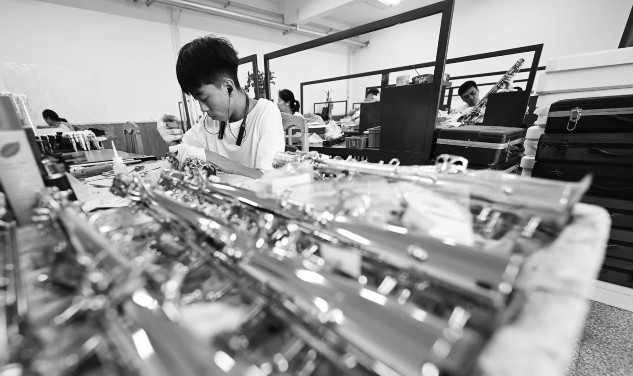 8月13日,在天津圣乐乐器有限公司,工作人员在生产车间装配乐器。位于天津市静海区的蔡公庄镇是国内西洋管乐器集中生产与集散中心之一。近年来,当地在品牌打造、规划设计、专业人才培养等多方面持续发力,推进乐器文化创意产业基地建设,不断提升乐器产业的知名度与影响力。目前,蔡公庄镇拥有乐器相关企业超100家,生产涵盖萨克斯、圆号、小号等100余种铜木管乐器,年生产西洋管乐器达40余万支,其中超八成远销海外。新华社记者赵子硕/摄