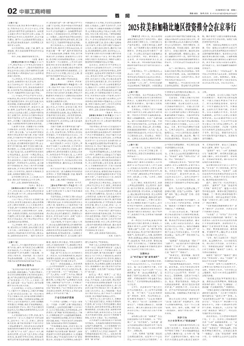 【本报讯】8月29日,2025拉美和加勒比地区投资推介会在京举行。此次活动由全国工商联主办、中国民营文化产业商会承办,全国工商联副主席罗来君,拉丁美洲和加勒比国家驻华使团团长、多米尼克驻华大使马丁·查尔斯,外交部拉美司副司长瞿瑜辉出席会议并致辞,巴西、格林纳达、厄瓜多尔、巴巴多斯四国驻华大使,秘鲁、哥伦比亚、巴哈马等拉美和加勒比国家驻华使节及民营企业代表100余人出席活动。 罗来君指出,今年正值中拉论坛正式运行十周年。今年5月,习近平主席在中拉论坛第四届部长级会议开幕式上发表主旨讲话,同拉方共同启动涵盖广泛领域的“五大工程”,为中拉关系的长远发展绘就了清晰蓝图。中国民营企业是推动中国经济增长的重要力量,也是促进中拉合作走深走实的生力军,希望中国民营企业以此次推介会为契机,深化中拉战略合作,践行长期合作,实现互利共赢;夯实能力建设,提升国际竞争力,打造中国品牌;健全风控体系,强化合规经营,增进民生福祉。全国工商联愿与各方一道,支持中国民营企业成为拉美迈向高质量发展的重要合作伙伴,为中拉命运共同体建设注入新动能。 马丁·查尔斯表示,本次会议积极促进拉美和加勒比地区经济发展,孕育着互利合作精神。未来,我们将继续努力协调双方利益,巩固合作共识,推动中拉关系迈向更高水平。 瞿瑜辉表示,中方愿同拉方共同落实全球发展倡议,坚定维护多边贸易体制,维护全球产业链供应链稳定畅通,维护开放合作的国际环境,持续扩大相互贸易和投资往来。 巴西、格林纳达两国驻华大使高望、马岩,秘鲁驻华大使馆代办塔拉韦拉及哥伦比亚商务参赞奥斯卡分别作了投资环境和政策推介。北京百分点科技集团董事长兼CEO苏萌,上海格林福德国际物流运输代理有限公司董事长许群,浙江中南卡通股份有限公司董事、总经理沈玉良,美团总编辑胡晓峰等作交流发言。 大会还举办了“中拉好品会”,集中展示中拉特色产品及文化、经贸领域交流成果。巴西、格林纳达、秘鲁、哥伦比亚四国驻华使节与参会商会及企业代表现场互动,回应企业关切。 (成钰)
