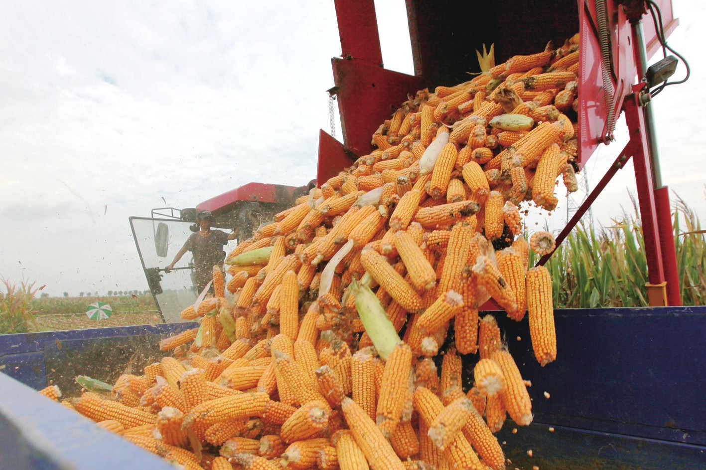 9月11日,山东省临沂市平邑县保太镇农民将收获的玉米装车。新华社发武纪全/摄
