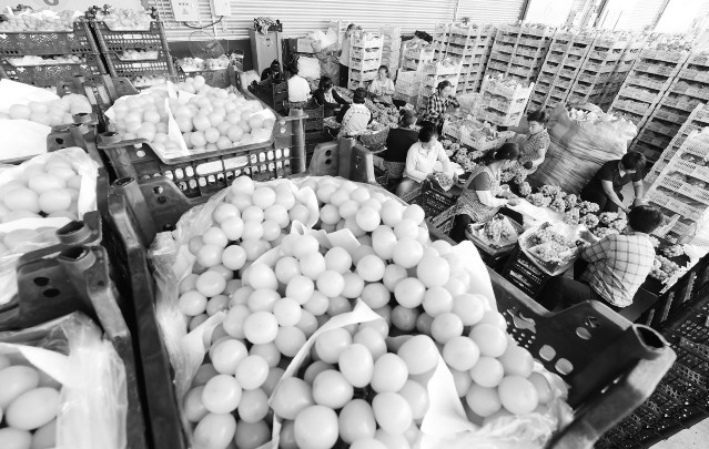 九月十一日,在河北省晋州市桃园镇周头村一家葡萄种植基地,农民将采收的葡萄分拣装箱。近年来,河北省晋州市因地制宜发展特色林果产业,引导农民种植梨、葡萄、苹果等多种水果,促进农民增收,助力乡村振兴。新华社记者杨世尧/摄