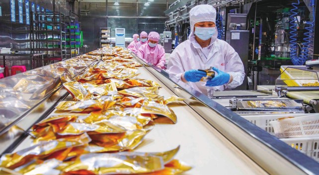 9月15日,工人在河北省遵化市苏家洼镇一家板栗加工企业包装车间工作。国家统计局15日发布的数据显示,8月份,全国规模以上工业增加值同比增长5.2%,环比增长0.37%;全国服务业生产指数同比增长5.6%。新华社发刘满仓/摄