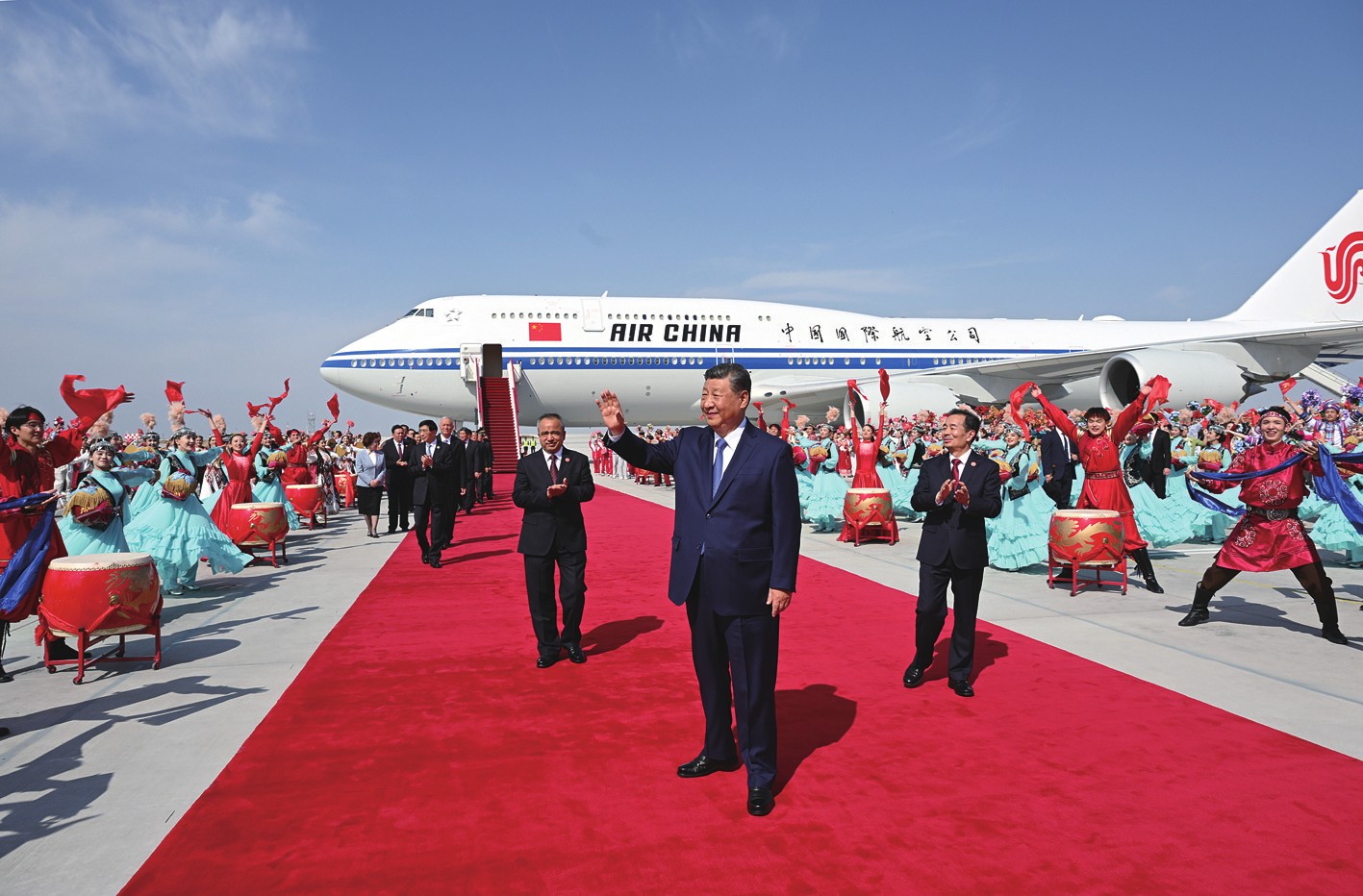 【新华社乌鲁木齐9月23日电】中共中央总书记、国家主席、中央军委主席习近平率中央代表团23日下午乘专机抵达乌鲁木齐,出席新疆维吾尔自治区成立70周年庆祝活动。习近平作为中共中央总书记、国家主席、中央军委主席率中央代表团到新疆出席新疆维吾尔自治区成立庆祝活动,在党和国家历史上是第一次,充分体现了党中央对新疆工作的高度重视、对新疆各族干部群众的亲切关怀。 中共中央政治局常委、全国政协主席、中央代表团团长王沪宁,中共中央政治局常委、中央办公厅主任蔡奇同机抵达。 金秋时节,新疆大地处处洋溢着丰收的喜悦。乌鲁木齐天山国际机场鼓乐喧天,气氛热烈。 14时20分许,习近平乘坐的专机在天山国际机场降落,等候在停机坪的新疆各族各界群众热烈欢呼。习近平走出舱门,向欢迎群众挥手致意。 新疆维吾尔自治区党委书记陈小江、自治区人民政府主席艾尔肯·吐尼亚孜、自治区人大常委会主任祖木热提·吾布力、自治区政协主席努尔兰·阿不都满金、新疆生产建设兵团政委何忠友等在舷梯下迎候。习近平走下舷梯时,少先队员献上鲜花。各族群众代表身着民族服饰,载歌载舞,欢迎总书记的到来,表达对总书记的衷心祝福。 乌鲁木齐市充满节日的喜庆氛围。从机场到住地沿途主要街道两旁花团锦簇、彩旗飘扬,各族群众手持红旗,齐声欢呼,表达欢迎和感激之情。习近平向沿途群众频频挥手、亲切致意。 担任中央代表团副团长的中共中央政治局委员、中央统战部部长李干杰,全国人大常委会副委员长雪克来提·扎克尔,国务委员谌贻琴,全国政协副主席王东峰,中央军委委员刘振立,陪同出席活动的中共中央政治局委员、国务院副总理何立峰,中共中央书记处书记、国务委员王小洪等同机抵达。 中央代表团成员同期抵达,成员包括中央和国家机关有关部门,军队有关单位,内蒙古、广西、西藏、宁夏4个自治区和对口支援新疆的有关省市负责同志等。 (图)9月23日下午,中共中央总书记、国家主席、中央军委主席习近平率中央代表团乘专机抵达乌鲁木齐,出席新疆维吾尔自治区成立70周年庆祝活动。这是习近平向欢迎群众挥手致意。新华社记者谢环驰/摄