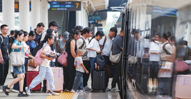9月29日,旅客在浙江金华站有序乘车。铁路国庆中秋假期运输9月29日启动,将于10月10日结束,为期12天。新华社发胡肖飞/摄