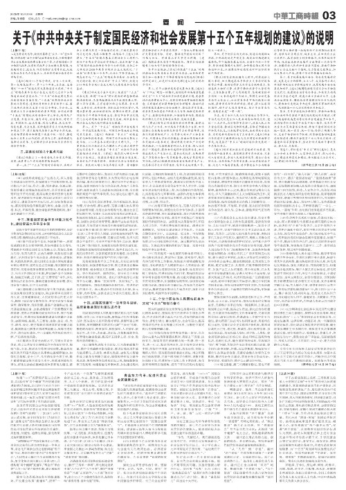 关于《中共中央关于制定国民经济和社会发展第十五个五年规划的建议》的说明