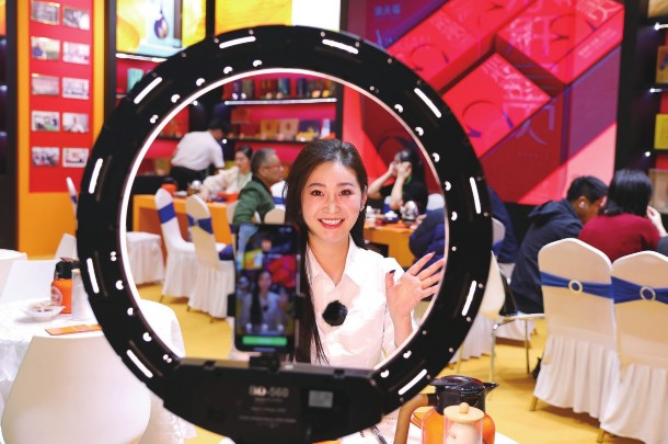 11月16日,一名主播在现场直播。11月16日,第十七届海峡两岸茶业博览会在福建省武夷山市举行。本届茶博会以“‘三茶’统筹·融合发展”为主题,设置展位2300个,展览面积4.8万平方米。新华社发黄杰敏/摄