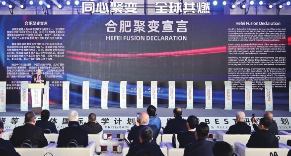 【新华社合肥11月24日电】开展燃烧等离子体物理研究、实现产出能量大于消耗能量、演示聚变能发电……11月24日上午,在位于安徽合肥未来大科学城的紧凑型聚变能实验装置(BEST)主机大厅,中国科学院“燃烧等离子体”国际科学计划正式启动并面向国际聚变界首次发布BEST研究计划,聚力点燃“人造太阳”。 核聚变能,模拟太阳的聚变反应释放能量,被誉为人类的“终极能源”。数十年来,科学家们通过磁约束等技术路线,在实验装置上探索聚变反应所需的高参数、长脉冲等严苛条件。“我们将要进入燃烧等离子体的新阶段。”中国科学院合肥物质科学研究院副院长、等离子体物理研究所所长宋云涛介绍,这是聚变工程研究的关键,这意味着核聚变像“火焰”一样,由反应本身产生的热量来维持,是未来持续发电的基础。 近年来,我国核聚变研究加速,多次打破世界纪录。BEST装置作为我国下一代“人造太阳”,承担“燃烧”使命。根据研究计划,2027年底该装置建成后,将进行氘氚燃烧等离子体实验研究,验证其长脉冲稳态运行能力,力求聚变功率达到20兆瓦至200兆瓦,实现产出能量大于消耗能量,演示聚变能发电。 “这是‘无人区’的探索,将面临许多工程与物理挑战。”宋云涛说,如阿尔法粒子对维持聚变反应所需的超高温条件至关重要,但对其输运规律等研究有待深入。“牵头启动国际科学计划,既能依托我国超导托卡马克大科学团队的建制化优势,也有助于凝聚全球科学家的智慧与力量,协同突破聚变燃烧前沿物理难题。” 根据国际科学计划,等离子体物理研究所将面向全球开放包括BEST在内的多个核聚变大科学装置平台,设立开放科研基金、资助高频次专家互访交流。来自法国、英国、德国等十余个国家的聚变科学家共同签署《合肥聚变宣言》,该宣言倡导开放共享与合作共赢精神,鼓励各国的科研人员到中国开展聚变合作研究。(陈诺 戴威) (图)11月24日,英国科学家艾伦·科斯特利宣读《合肥聚变宣言》。 新华社记者周牧/摄