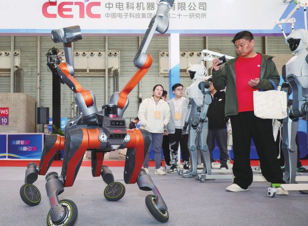 11月25日,中国电子科技集团公司第二十一研究所研制的半人马机器人在展会现场进行演示。11月25日,由中国电子科技集团公司第二十一研究所主办的第二十九届中国(国际)小电机技术研讨会暨展览会在上海新国际博览中心开幕。新华社记者王翔/摄