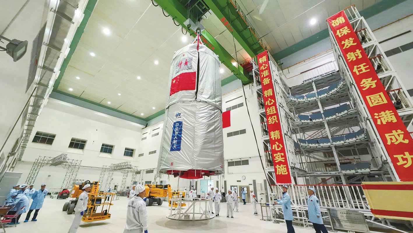 11月12日,神舟二十二号飞船准备从厂房吊装至公路运输车。我国于11月25日12时11分成功发射神舟二十二号飞船,中国载人航天工程首次应急发射任务取得圆满成功。新华社发宋迎奥/摄
