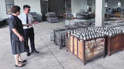 | 工行萧山临浦支行工作人员走访浙江某汽车零部件有限公司,了解企业经营情况及融资需求、工商银行供图 |