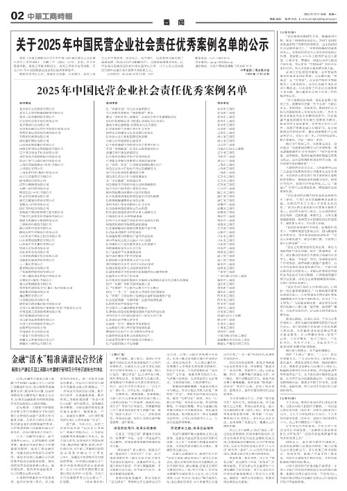 关于2025年中国民营企业社会责任优秀案例名单的公示